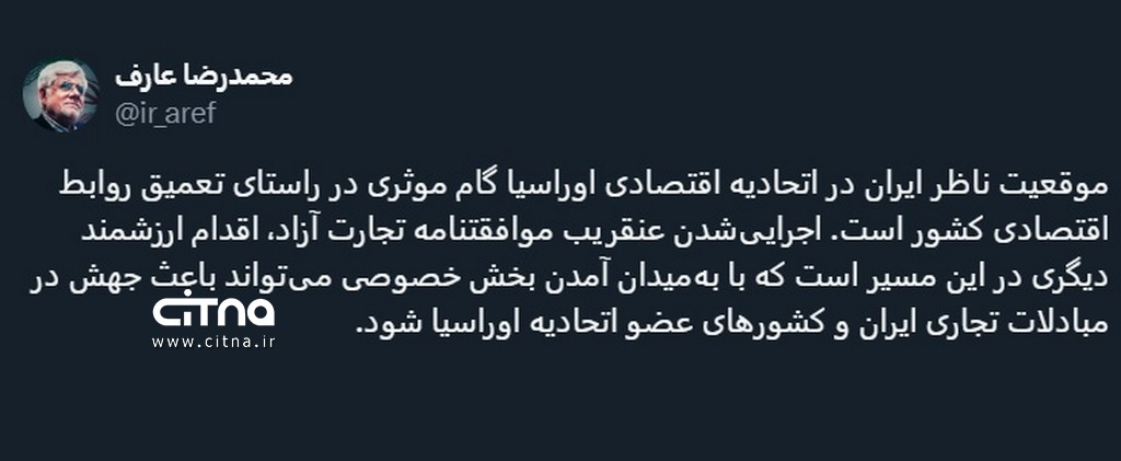 به گزارش سیتنا، دکتر محمدرضا عارف در پستی در ایکس آورده است: