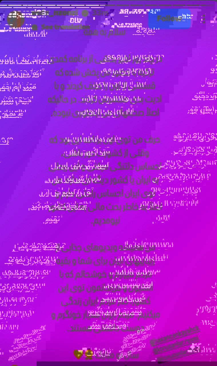 در چند روز اخیر بخشی از برنامه کمدی ترکیه با حضور من پخش شده که قسمتی از اون را حذف کردند و با ادیت بدی منتشرش کردند. در حالیکه اصلاً صحبتهای من اینطوری نبوده.