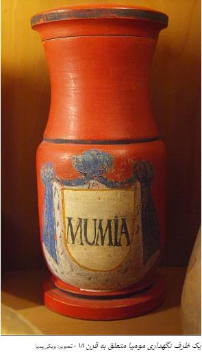 در قرون وسطی مومیا برای درمان طیف گستردهای از بیماریها توصیه میشد؛ از سل و سکته گرفته تا غمزدگی و پیری. داروسازان آن را در کنار دیگر مواد بهدستآمده از بدن انسان مانند پودر جمجمه و چربی تقطیرشده انسان میفروختند.