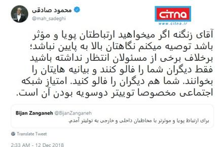 محمود صادقی، عضو فراکسیون امید مجلس در گفتوگو با سیتنا: