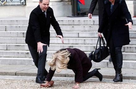 زمین خوردن خانم نخست وزیر سوژهی شبکههای اجتماعی شد (فیلم)