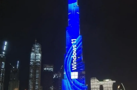 جشن عرضه ویندوز ۱۱ در برج خلیفه دبی