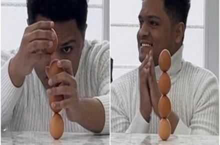 شکستن رکورد گینس با متعادلساختن چهار تخممرغ روی یکدیگر!